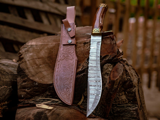The Highlander – Damascus Bowie Knife with Polished Rosewood Handle
