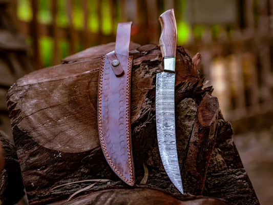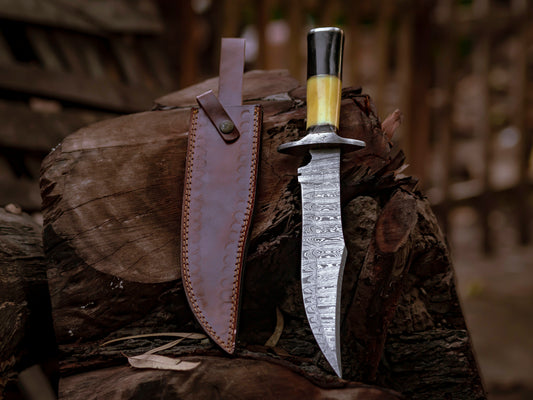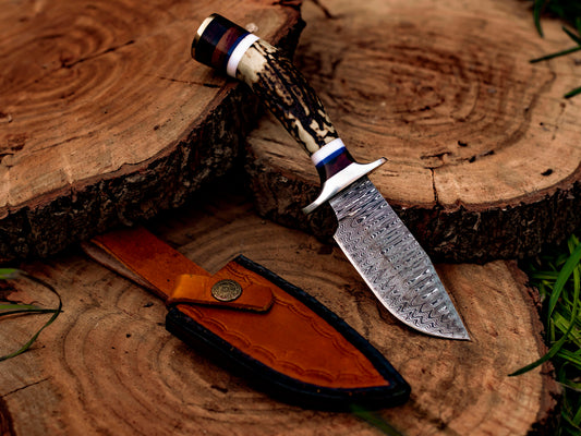 Wilderness Hunter & Camper – Damascus Knife with Bone-Wood Handle