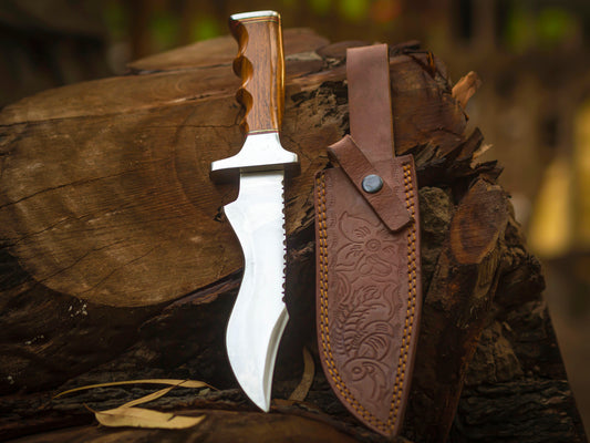 The Wolf’s Claw – D2 Steel Bowie Knife with Sculpted Wooden Handle