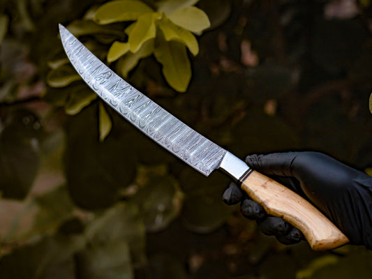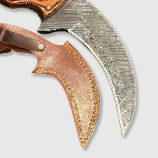 The Claw – 8.5″ Damascus Knife with Tali Wood Handle for Outdoor Use